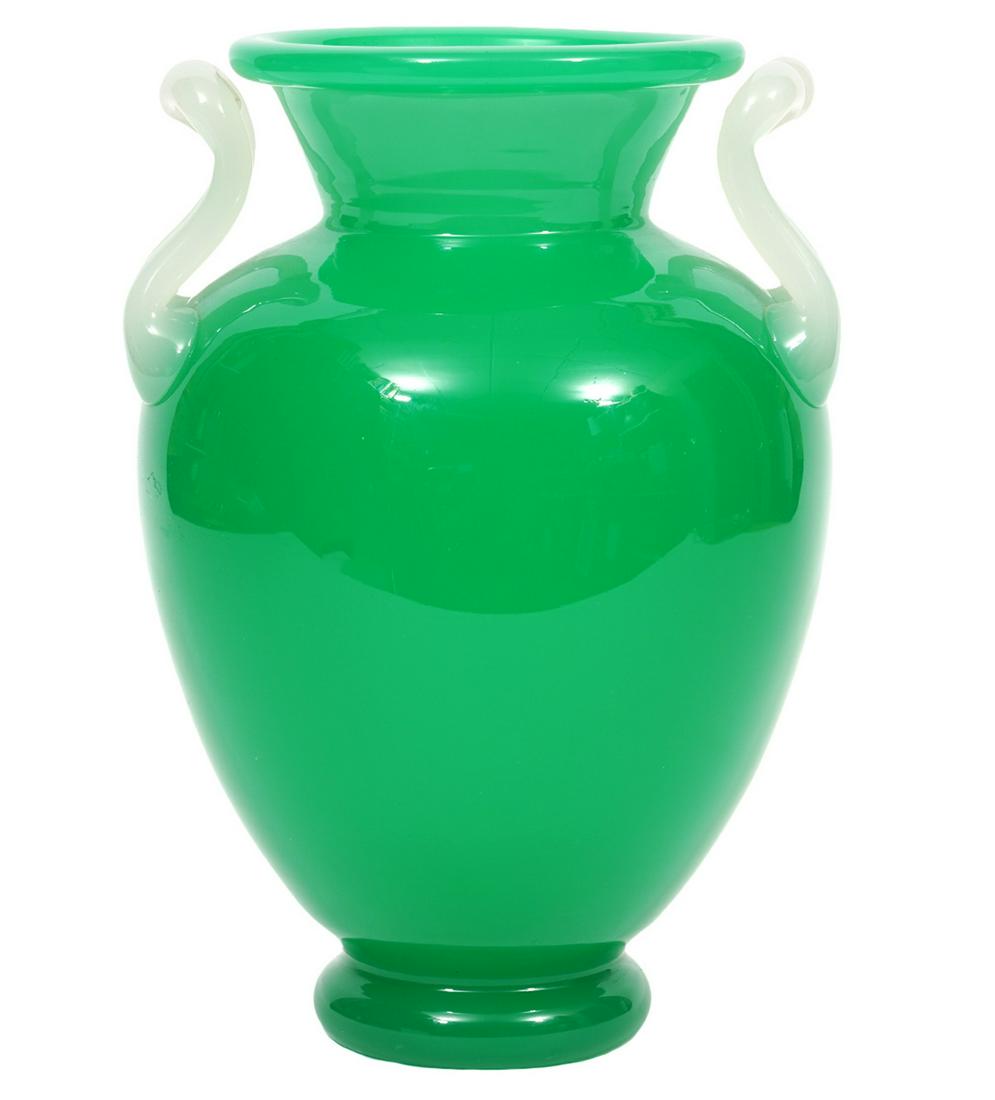 Large Steuben Jadeite Two Handle Urn