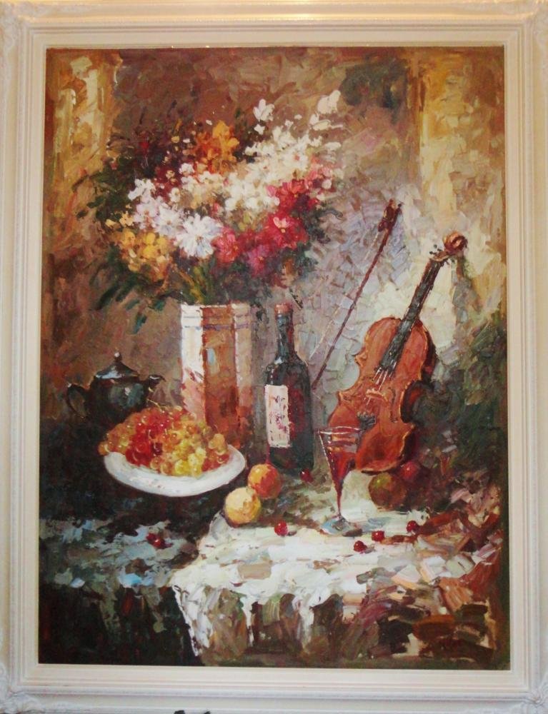 Large Textured Abstract Violin Red Wine Impressionistic