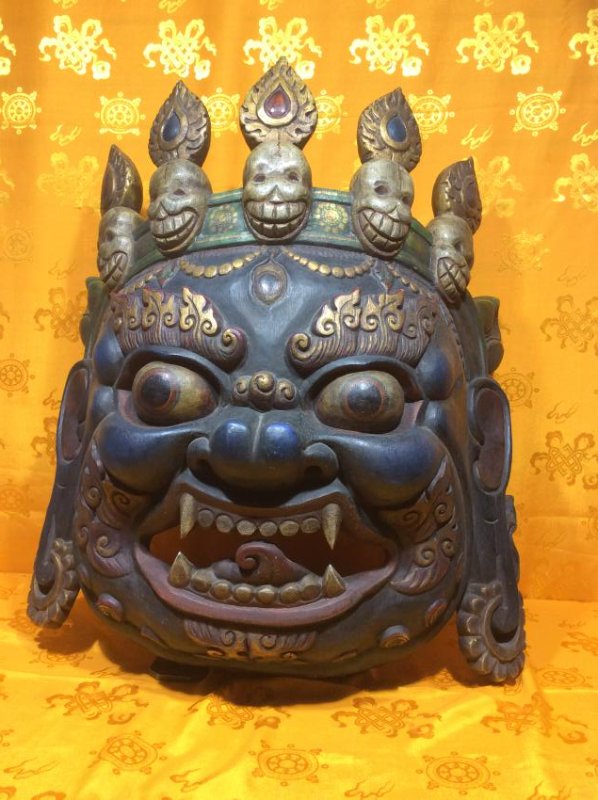 Himalayan Polychrome Dry Lacquer Mask with Naga Crown