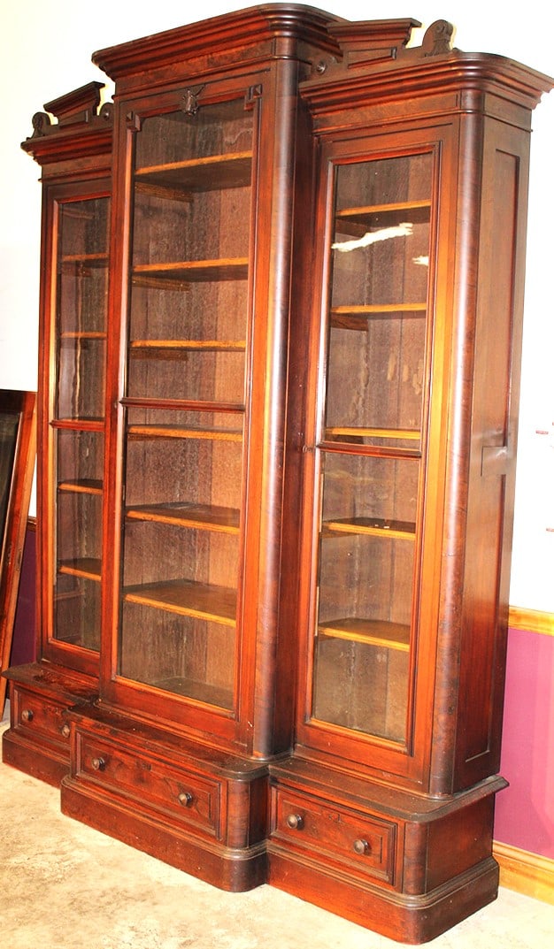 Large Victorian Walnut Step Back Triple Bookcase
