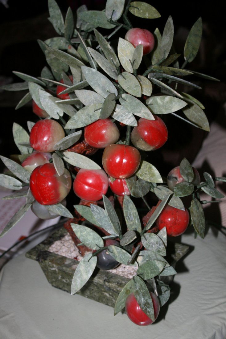 LARGE VINTAGE CHINESE JADE PEACH TREE