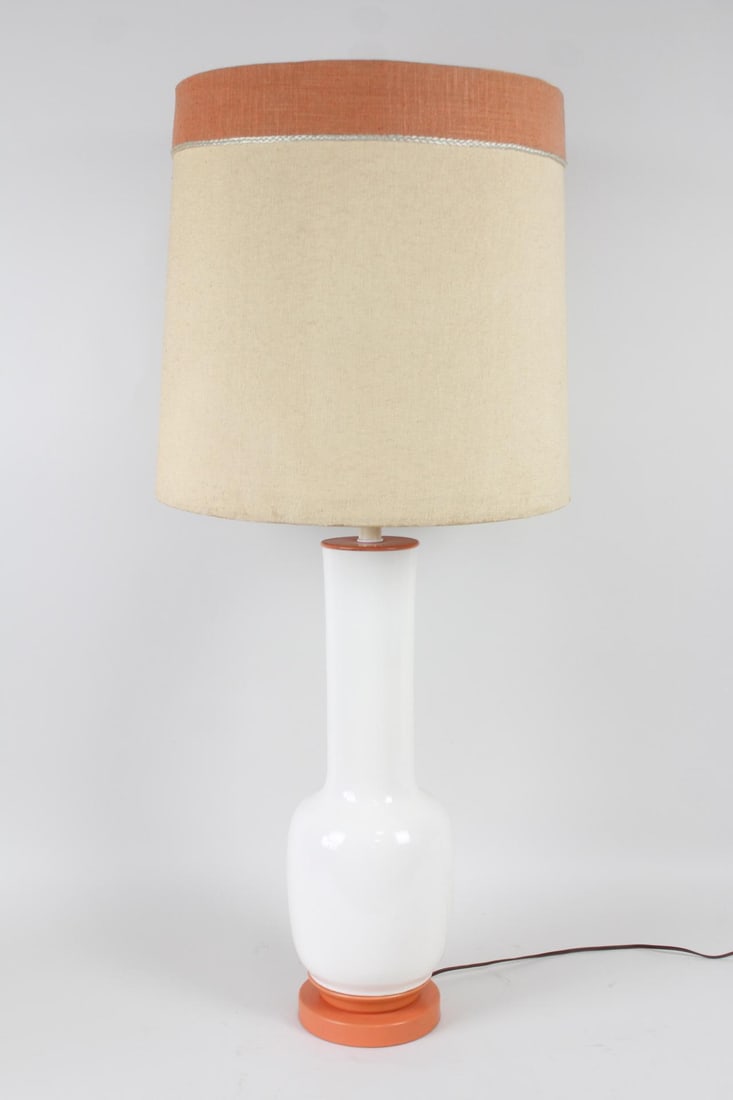 Large White & Orange Ceramic Table Lamp