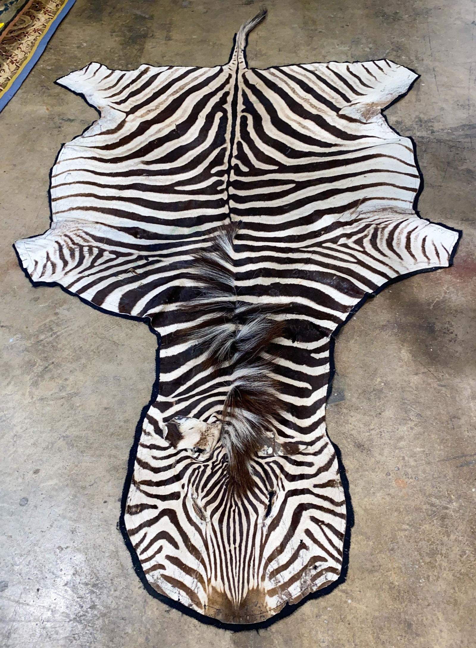 Unusual Zebra Rug With Finished Head Taxidermy