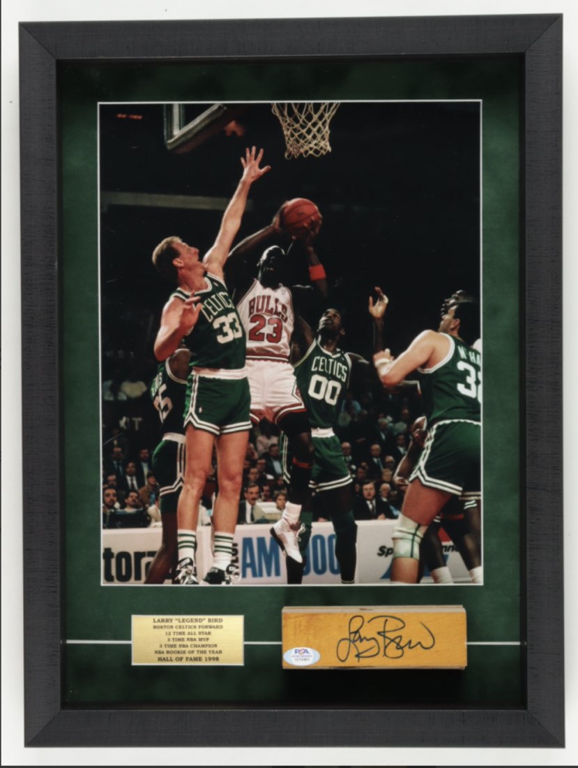 Larry Bird Signed Celtics 14.5x19.5 Custom Framed