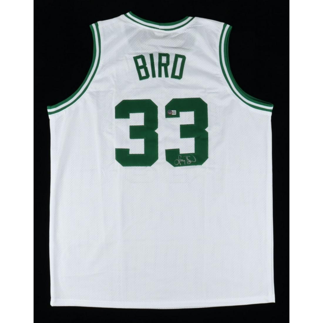 SoldLarry Bird Signed Jersey (Beckett COA & Bird Hologram)Custom on-court style jersey. Everything is sewn on, size XL. Has been hand-signed by Larry Bird (HOF). The lot / autograph(s) includes an official Beckett Authentication Services serially-numbered hoSee Sold Price