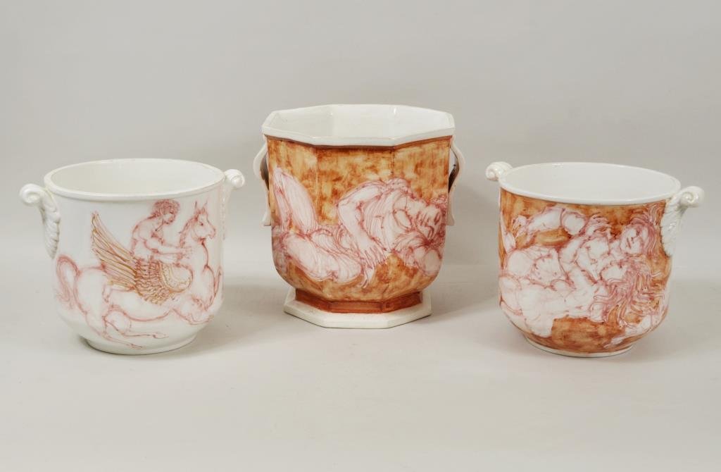 Larry Cabaniss 3 Hand Painted Porcelain Cachepots