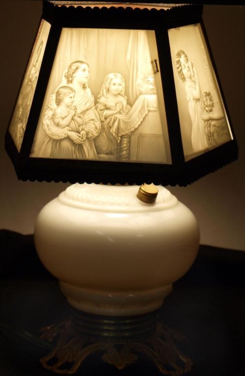 LATE 19TH C. GERMAN FIVE PANEL LITHOPHANE LAMP