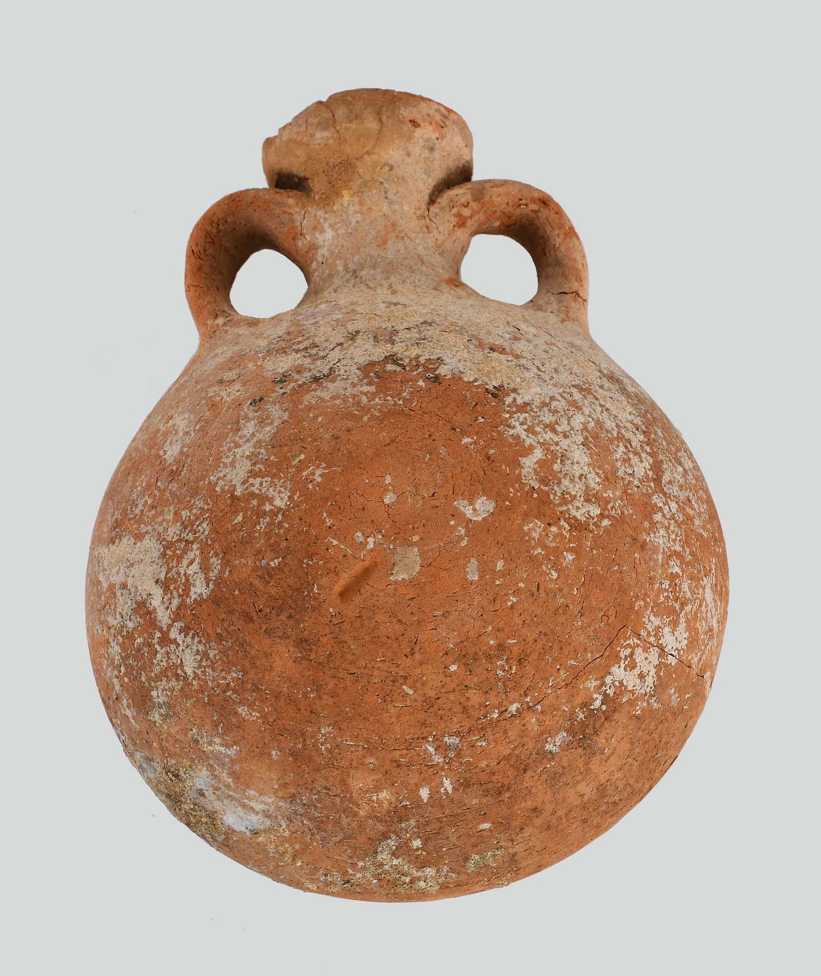 LATE BRONZE AGE TERRA COTTA TWO-HANDLED CIRCULAR JUG