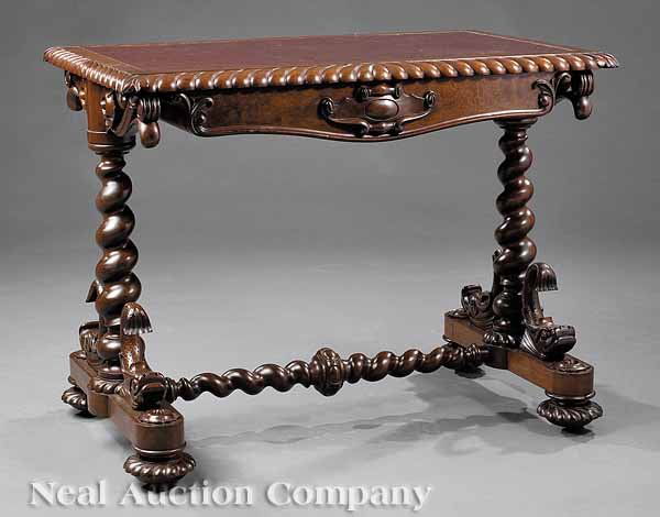 Late Classical Carved Walnut Library Table