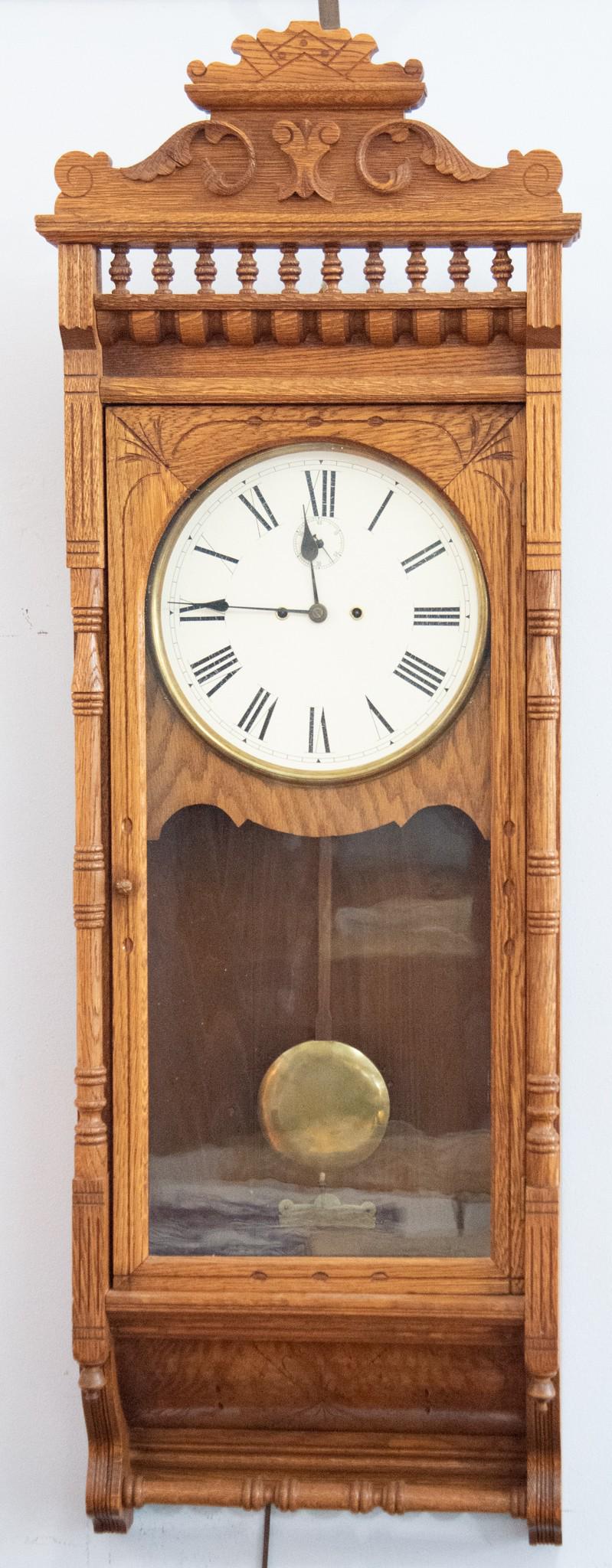 Regulator Long Case Wall ClockFeb 26, 2026Forestville Oak Wall Clock with PendulumMar 15, 2026Antique Oak Wall Clock by International Time Recording Company, Pendulum As Is10 hrs LeftAntique European Wall Clock with Dual Weights & Gong StrikeMar 15, 20261990'S RIDGEWAY 9-TUBE MOONFACE MODEL 175 COUNTRY STYLE GRANDFATHER CLOCKHoward Miller Tempus Fugit Grandfather ClockMar 04, 2026Elegant wooden wall clockMar 15, 2026Oak Decorative Wall Clock10 hrs LeftAaron Willard dish dial shelf clock, circa 1825. Reverse painted dial door above a paneled mahoganyMar 01, 2026Tall German Longcase Clock with Warm Gong Chime, Original MovementMar 15, 2026E.F. & W.W. CARTER 8-DAY MAHOGANY-CASE WALL CLOCK, REVERSE-PAINTED GLASS7 days LeftA mahogany cased mantle clock, 20th century,Hand Made Pennsylvania Cherry Case Wall Clock with Carved Eagle Top10 hrs LeftSligh Model 818 Inlaid Mahogany Grandfather Clock with Multi Chime5 days LeftVintage D&A Schoolhouse Regulator Time Strike Wall Clock, 43h x 15w x 8d inches, w/keySligh John Goddard Cherry Grandfather Clock with Beveled Glass and Brass MovementMar 02, 2026