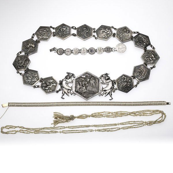 Lot of Victorian Style Sterling Silver Jewelry with StonesFeb 28, 2026VINTAGE GOLD FILLED LADIES BRACELETS - LOT OF 3Mar 08, 2026An Estate Lot of Six Necklaces, Late 20th Century, 77FK2 days LeftSTERLING SILVER JEWELRY LOT2 days LeftSTERLING SILVER JEWELRY LOT2 days LeftVintage Costume Jewelry Group Lot - Bracelets, Buckles etc.Mar 28, 2026MIXED LOT WHITE METAL JEWELLERY - BRACELETS, NECKLACES. 200g APPROXMar 06, 2026An Estate Lot of Three Necklaces, Late 20th-Early 21st Century, 42ZF2 days LeftAn Estate Lot of Three Necklaces, Late 20th-Early 21st Century, 43ZF2 days LeftAn Estate Lot of Three Necklaces and One Bracelet, Late 20th-Early 21st Century, 41ZF4 days LeftTraditional costume jewellery set: necklace, bracelet, ring and drop earrings. 835 silver.Feb 28, 2026Three silver belts, 20th century, Central Asia,3 days LeftMIXED ARTISAN SILVER JEWELLERY 245.9g5 days LeftGROUP OF ASSORTED DUTCH SILVER & CHATELAINE, 98g5 days LeftYemeni Bedouin Jewelry (4 pcs)5 days LeftCOLLECTION OF PERUVIAN SILVER 140.1g5 days Left
