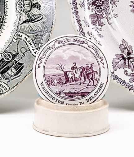 Lavender transferware pomade box, , Decorated wit