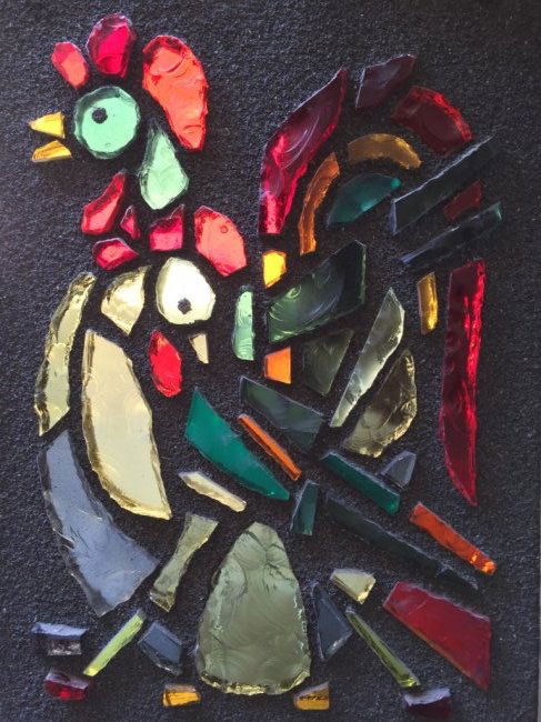 Le coq Composition de morceaux de verre assemblés sur