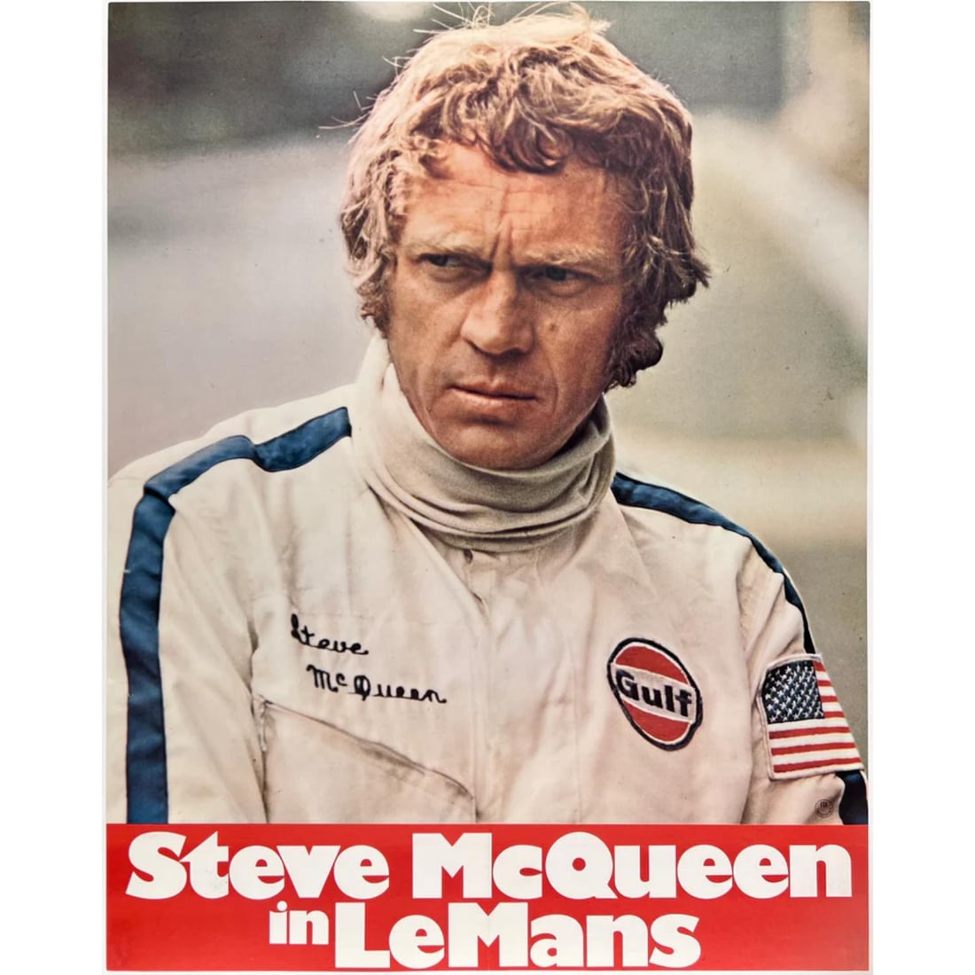 SoldSTEVE MCQUEEN LE MANS ORIGINAL VINTAGE F1 RACING POSTER1971 Le Mans Gulf Oil promotional poster showing Steve McQueen (1930-1980) and the pits at Le Mans, the poster was published by Gulf Oil as a tie-in with the movie. Cinema Center Films, SP-12988, 22 xSee Sold Price