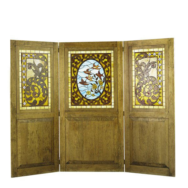 Leaded glass three-section oak screen