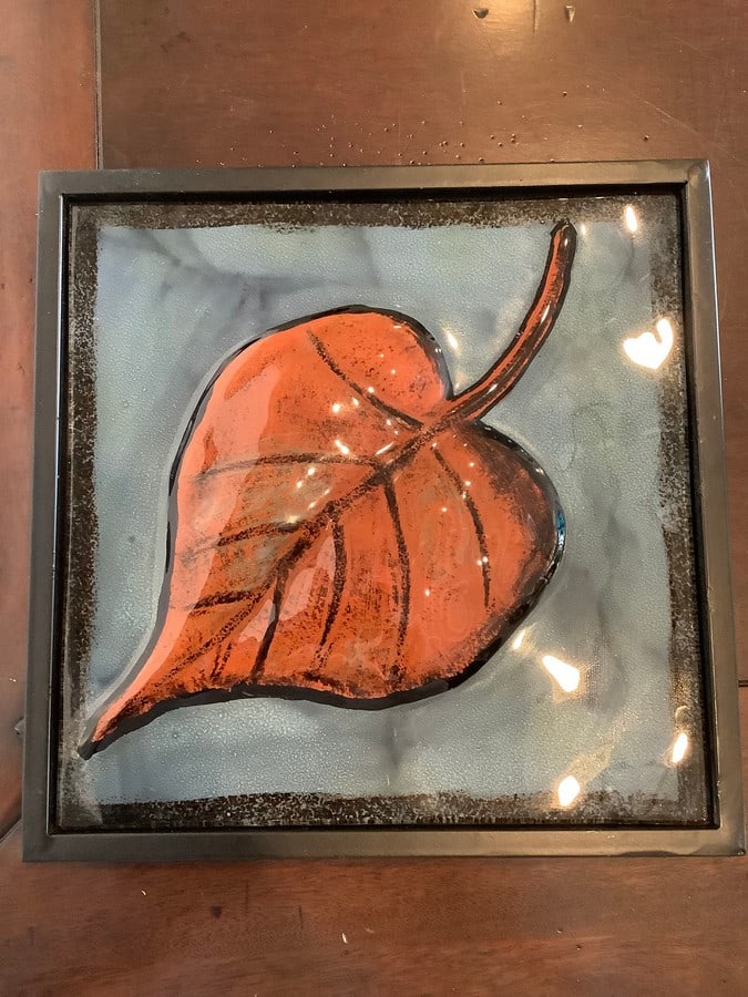 Leaf stained glass framed decor(10.75in.x10.75in.)