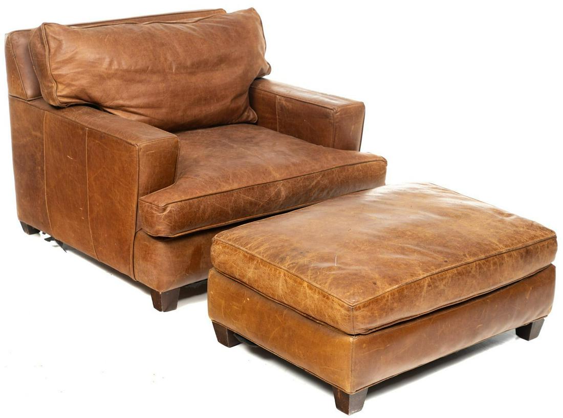 Leather Arm Chair and Ottoman