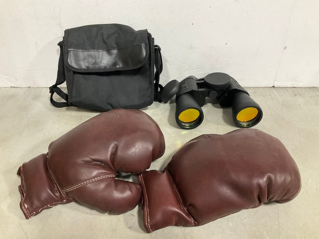 Leather Boxing Gloves, and Binoculars