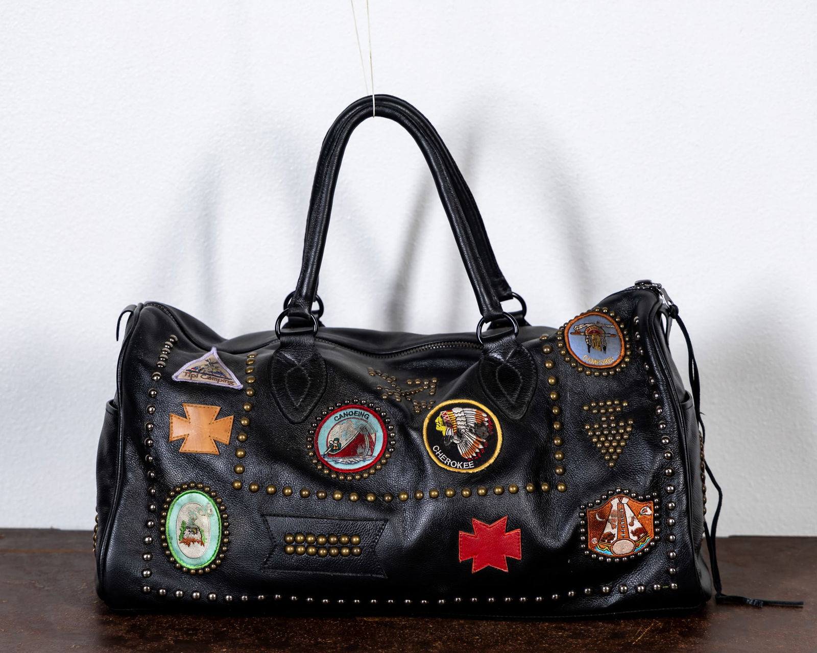 Leather Patchwork and Brass Studded Duffle Bag