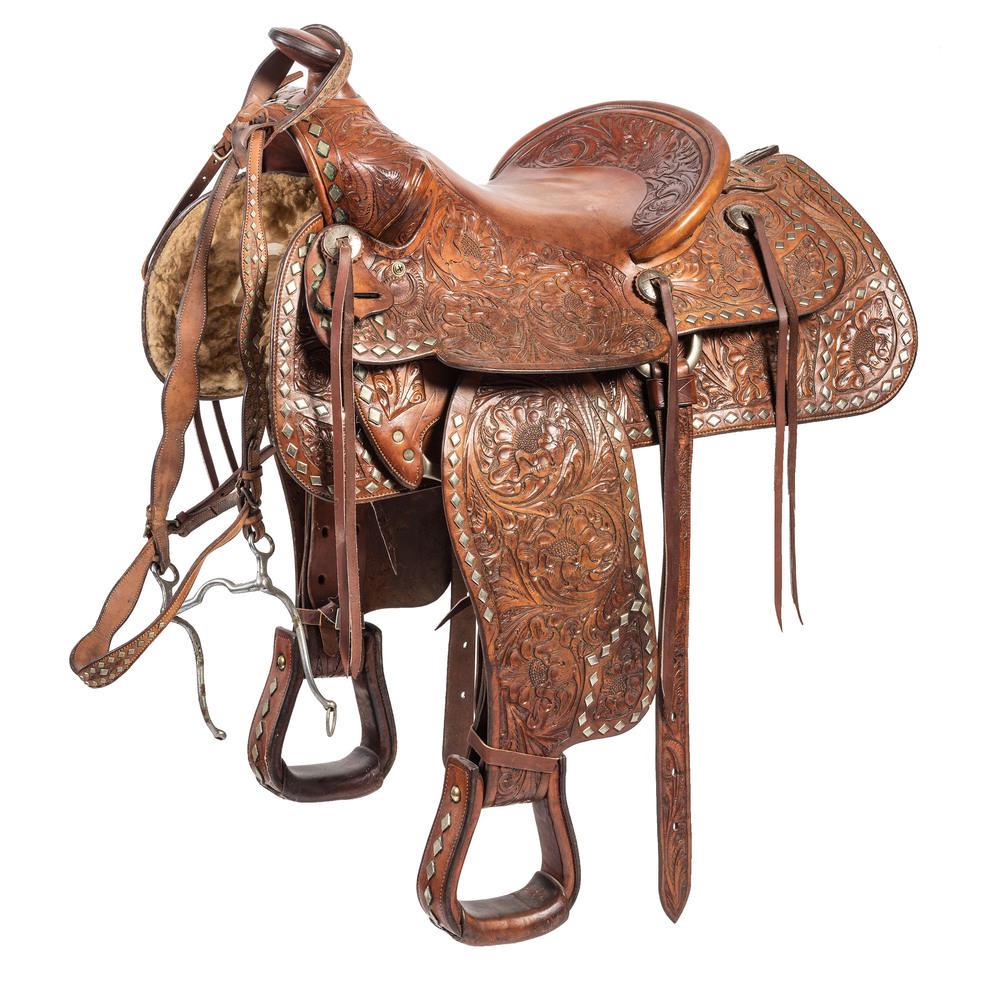 Frederic Remington The Bronco Buster BronzeFeb 14, 2026Well-Made Western Roping Saddle with Deep Seat and Leather-Wrapped Horn2 days LeftWilliam Vanderveer, Nighthawk Saddle and StandFeb 12, 2026Vintage Stubben Siegfried Swiss Leather Saddle Circa 19906 days LeftANTIQUE RUSSIAN CAUCASIAN / CIRCASSIAN SILVER DECORATED HORSE SADDLEFeb 21, 2026Vintage Leather SaddleFeb 17, 2026Hand-Tooled Western Leather Gun Belt and Holster Rig with Turquoise Buckle AssemblyFeb 15, 2026Durango Let Love Fly Women's Square Toe Western Boots Nicotine Brown 10Feb 13, 2026Vintage Sterling Silver Western Belt4 days LeftCOLT 2ND GEN SINGLE ACTION ARMY .357 MAG REVOLVERFeb 14, 2026Old Gringo Hand Tooled Leather Cowboy Boots Size 10Feb 12, 2026Vintage Dan Post Cowboy Boots Flame Stitching Size 10.5 D4 days LeftVintage Tooled Leather Barrel Bag Handbag Shoulder Strap Satchel6 days LeftSaddle GroupingFeb 21, 2026Artisan Vintage Tooled Leather Pouch with Floral Motif5 days LeftCowboy Riding Bronze SculptureFeb 20, 2026