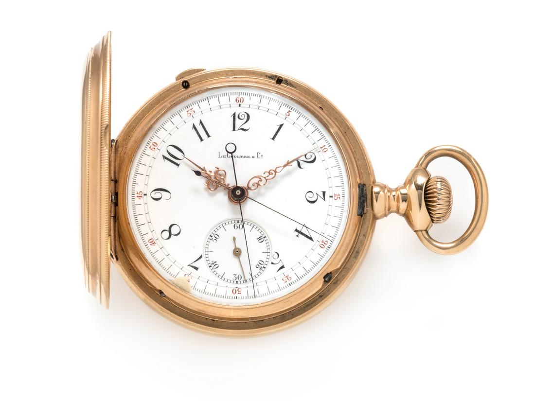LECOULTRE, 18K YELLOW GOLD HUNTER CASE SPLIT SECOND