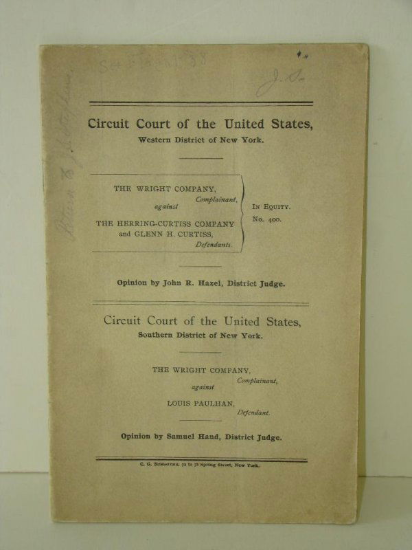 LEGAL PAMPHLET. WRIGHT COMAPANY VS. CURTISS.