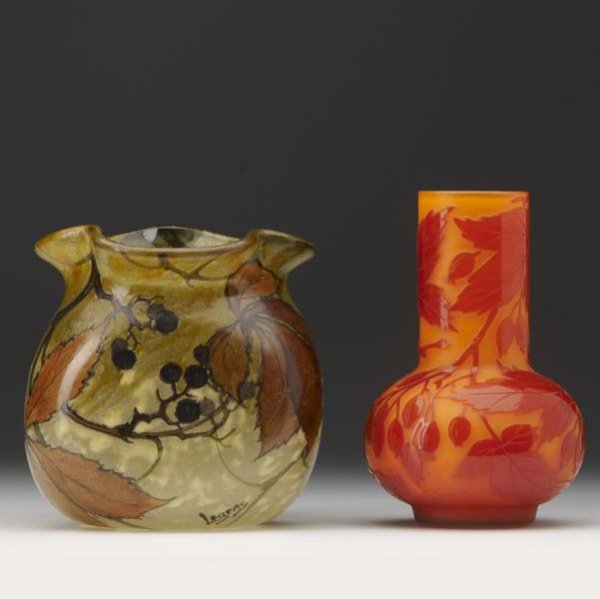 LEGRAS / WEIS Two vases: Legras with enameled leaf