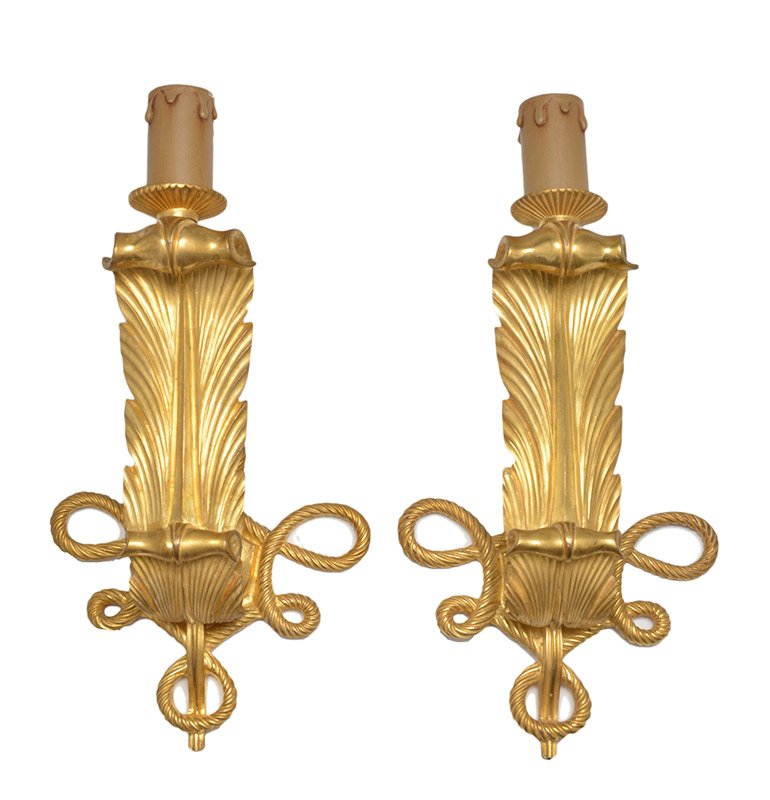 A pair of brass wall sconces In the manner of VaughanPair Of Elegant Brass Wall Sconces With Swirl/Flower Design2 days LeftPair of Vintage Estate Brass Wall Candleholder SconcesFeb 22, 2026Set of 2 Neoclassical Bronze Wall Sconces P.E. Guerin Swan MotifFeb 27, 2026Vintage Pair of Solid Brass Wall-Mount Sconces.Feb 20, 2026(2) LARGE REGENCE STYLE ORMOLU 5-LIGHT WALL SCONCESFeb 22, 2026(2) LOUIS XVI STYLE ORMOLU TRUMPET-FORM 3-LIGHT WALL SCONCES, 36"HFeb 21, 202619th Century French Regence Giltwood Mirrored Candle Sconces Set of 2Mar 01, 2026Pair of Louis XVI Style Gilt Brass Sconces7 days LeftBaroque Style Giltwood Wall Sconces, 19th C., PairApr 07, 2026Pair of Gilt Bronze Figural Wall Sconces, 4 Lights Each, Late 19th–Early 20th Century1 day LeftElegant Pair of Neoclassical Brass 3-Arm Wall Sconces18 hrs LeftA PAIR OF EARLY LOUIS XV ORMOLU TWO-BRANCH WALL-LIGHTS CIRCA 1725-173019 hrs LeftAntique Pair of French Gilt bronze sconces, 19th century France, wall sconces with 2 armsFeb 21, 20262 French Louis XV three light gilt wall sconces.Feb 24, 2026Pair of Dorothy Draper Style Gilded Wall Sconces