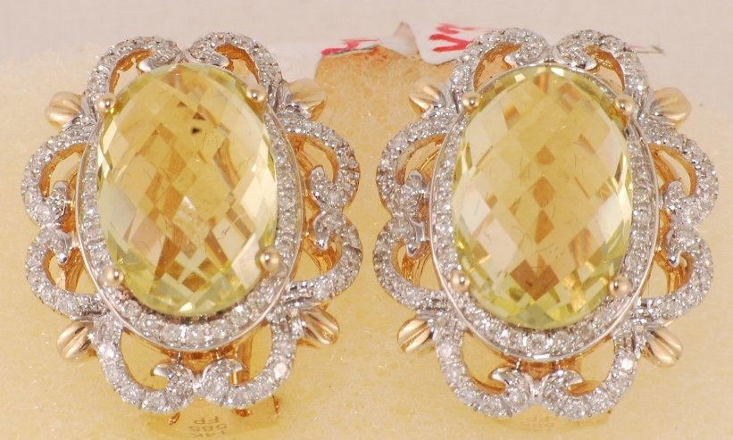 Lemon Quartz and Diamond Earrings
