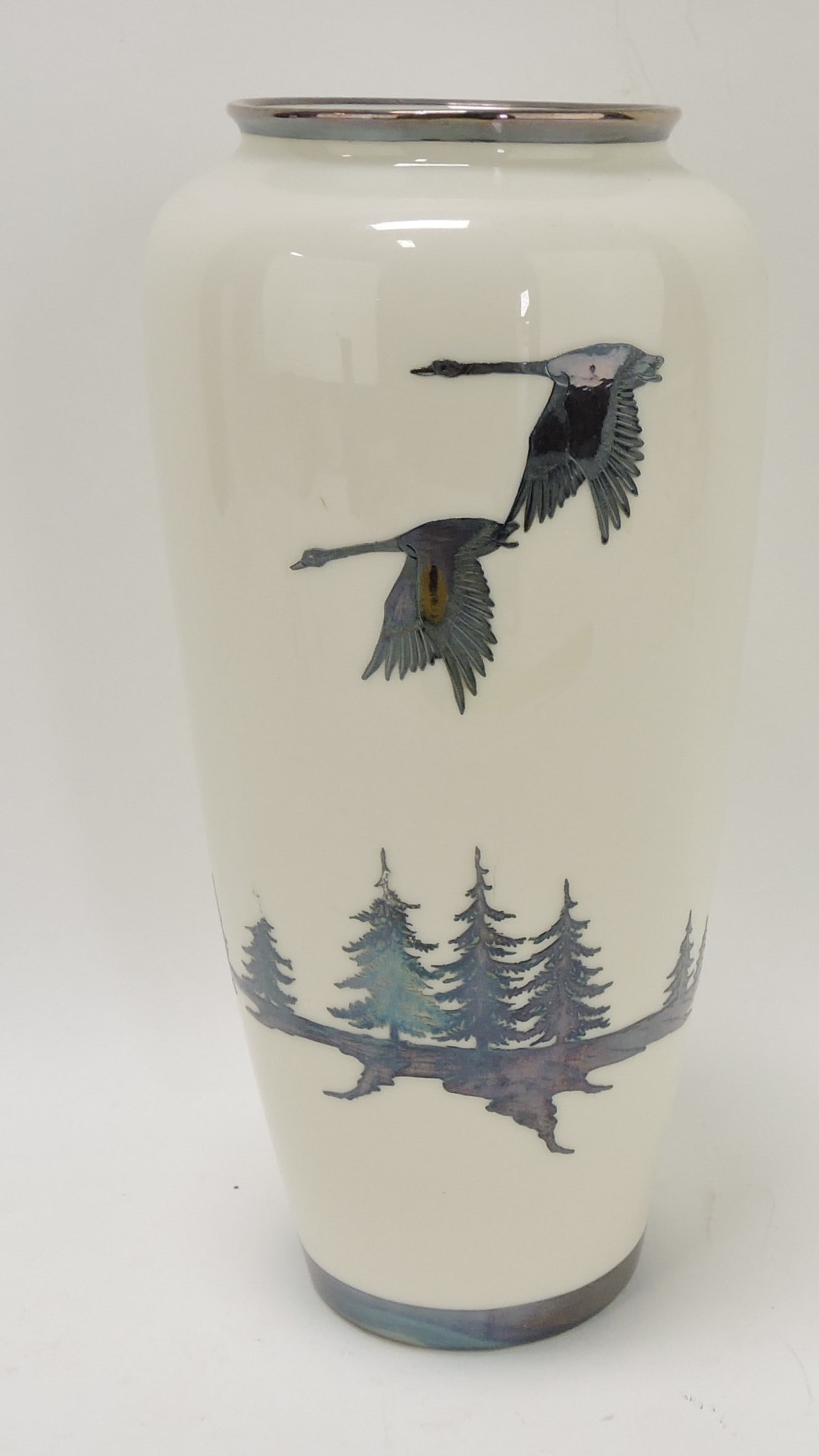 Lenox Belleek 10 1/2" silver overlay