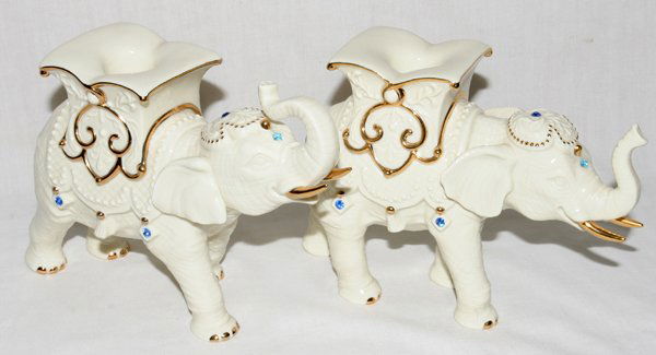 LENOX CHINA ELEPHANT CANDLESTICKS, PAIR, H 5"
