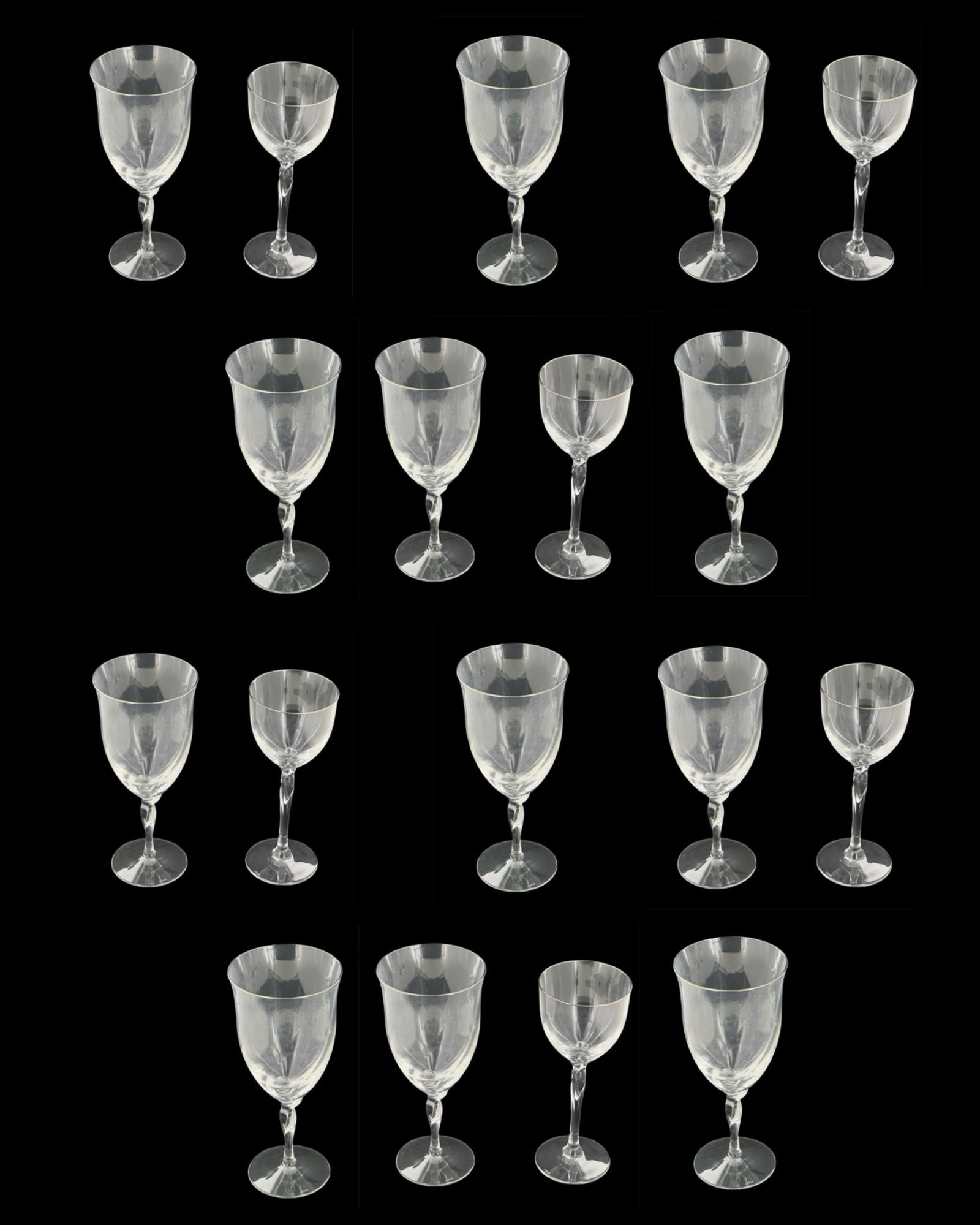 Lot of 29 Glass Stemware, Baccarat & RosenthalFeb 21, 2026A composed lot of 14 glasses in baccarat crystalFeb 24, 2026A lot of 28 glasses and one decanter in Baccarat crystal, model MassenaFeb 24, 2026Collection of 18 crystal wine glasses with cut diamond pattern, probably Cristallerie de Vonêche,3 days Left6 Mini Crystal Wine Glasses1 day LeftSet of 6 Tudor Crystal ""Beaufort"" Wine GobletsEtched Crystal Stemware Service, 33 Pcs.Mar 12, 2026Justin Tharaud "Emerald" Cut Crystal Stemware, 11Mar 12, 2026Flared Lip Crystal Stemware Service, 34 Pcs.Mar 12, 2026GROUP OF 13 MATCHING CLEAR STEMWARE GLASSES4 days Left41 PC. WATERFORD LISMORE CRYSTAL DRINKWAREFeb 22, 2026Royal Leerdam "Amsterdam" Wine Glasses, 12Mar 12, 202616 PC. WATERFORD "KILDARE" CRYSTAL STEMWAREFeb 22, 2026Gorham Full Lead Crystal, Diamond Cut Glass Goblet x7Feb 21, 2026Set of Colorless Cut Glass Stemware1 hr LeftTwelve Waterford Crystal Wine Glasses4 days Left