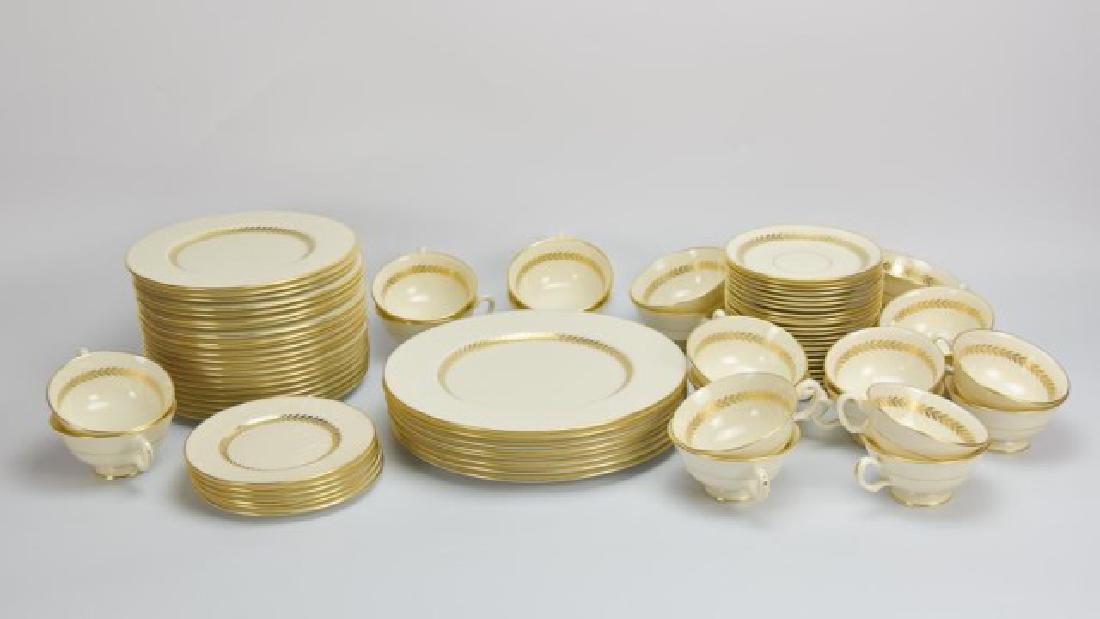 90 Pc Lot of Minton Meadow China1 day LeftLot of Shelley Bone China White and Gold Dinnerware PiecesMar 26, 2026(97) LIMOGES LANTERNIER GILT-ENCRUSTED PORCELAIN DINNER SERVICE5 hrs LeftKPM, Berlin. Twelve Royal Ivory tea cups with saucers in cream-colored porcelain with goldKPM, Berlin. Six Royal Ivory dinner plates in cream-colored porcelain with gold decoration. 1920s.71 Pcs, Continental Dinnerware, Cream & GiltMar 07, 2026Royal Crown Derby Porcelain Dinner Service, 153Mar 12, 2026103 PCS. LIMOGES DINNER SET "VENDOME" PATTERN,1 day LeftLenox Chesapeake Dinnerware Set - Service for 8 Plus ExtrasMar 26, 2026C. AHRENFELDT LIMOGES PARTIAL CHINA SERVICE2 days LeftSYRACUSE CHINA "BRACELET" DINNER SERVICE2 days LeftLenox "Eternal" Dinnerware Service, 23 Pcs.Mar 12, 2026Hutschenreuther Porcelain Dinner Service for 12Mar 12, 2026PIRKENHAMMER GILT DINNER SERVICE.1 day LeftGreat set 9 Tiffany & Co Lenox White Cream Gilded Luncheon Plates56 PC. LENOX "HOLIDAY" CHINA DINNERWARE SET2 days Left