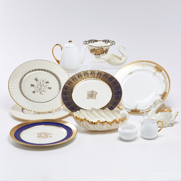 ENGLISH GILT-DECORATED PORCELAIN TEA ARTICLES, LOT OF 11Mar 05, 2026Villmont Maison Anvers Gilded Floral Partial China Service3 days LeftLARGE GERMAN GDR REICHENBACH PORCELAIN DINNER SERVICE5 days Left10 Royal Copenhagen Golden Basket dinner plates in hand-painted porcelain with flowers and goldKPM, Berlin. Five Royal Ivory lunch plates in cream-colored porcelain with gold decoration. 1920s.KPM, Berlin. Six Royal Ivory dinner plates in cream-colored porcelain with gold decoration. 1920s.KPM, Berlin. Six Royal Ivory deep plates in cream-colored porcelain with gold decoration. 1920s.8 Minton England Gilt Porcelain Dessert Plates H5017 circa 1955Mar 15, 20268 Minton England Gilt Porcelain Dinner Plates H5017 circa 1957Mar 15, 2026Wedgewood "California" Gold guild set of 8 Dinner PlatesMar 28, 2026Royal Doulton Fine China Dinner Plates and BowlsMar 28, 2026Charles Ahrenfeldt Porcelain Scallop Rimmed GIlt Emblem Dessert Plates5 days LeftSet of 5 Victorian Style W.S. George Derwood Plates – Romantic Scene & 22K Gold TrimMar 22, 2026Royal Crown Derby Porcelain Dinner Service, 153Mar 12, 2026Scalloped Edge Antique English Dessert Plates, Rose and Gilt Design - Set of 10Lenox "Eternal" Dinnerware Service, 23 Pcs.Mar 12, 2026