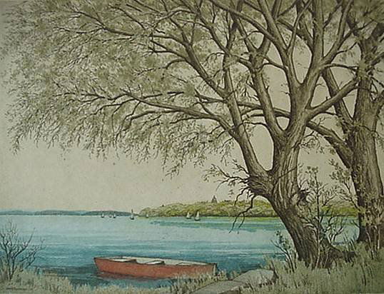 Leon Pescheret- ''The Willows'', etching in colors