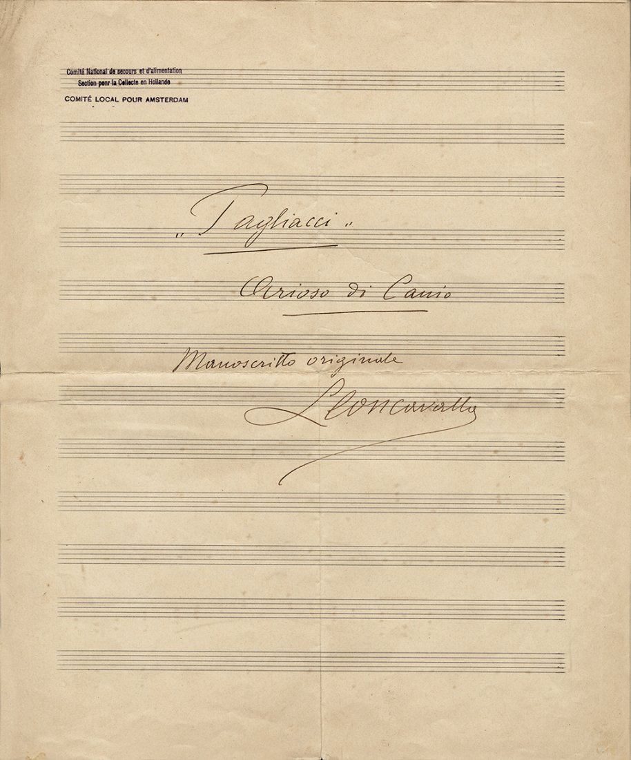 SoldLeoncavallo Signed Musical QuotationLot 175 Leoncavallo Signed Musical Quotation Ruggero (or Ruggiero) Leoncavallo (Italian 1857-1919) image next to signed Serenata d'Arlecchino stanza from his acclaimed opera Pagliacci ”O colombSee Sold Price
