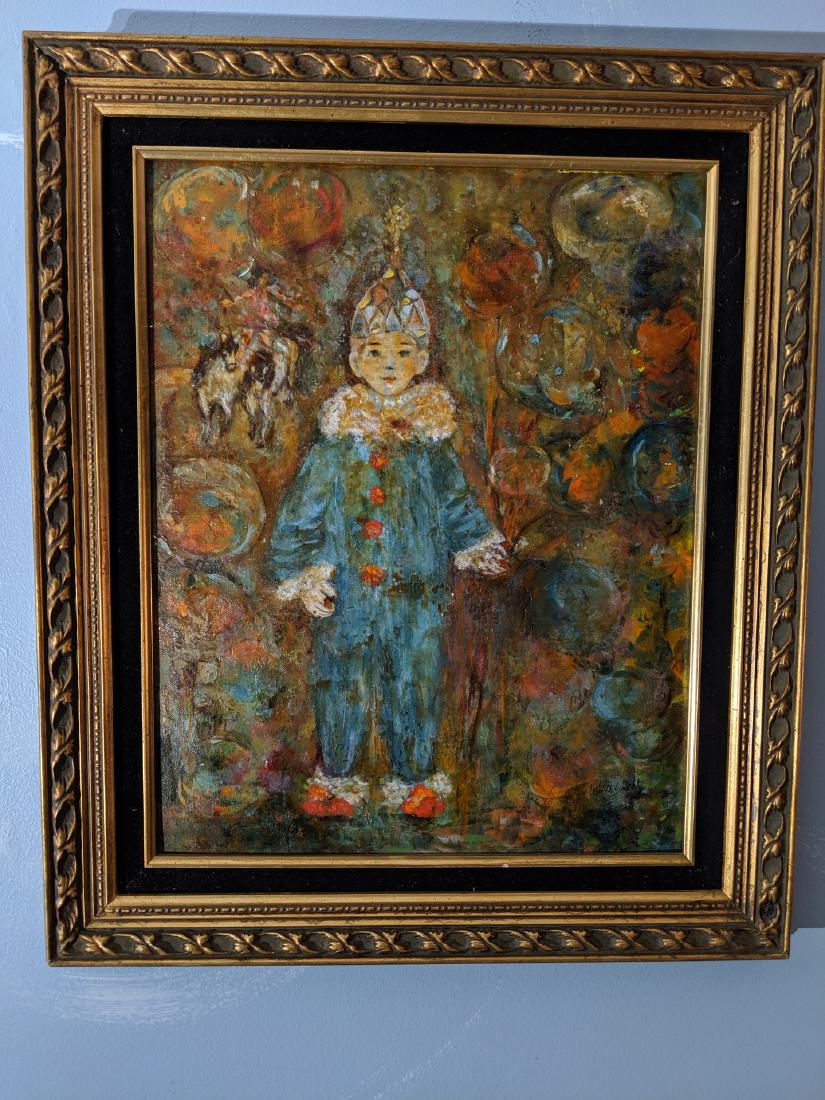 Lester Schwartz Harlequin Boy Oil on Board Painting