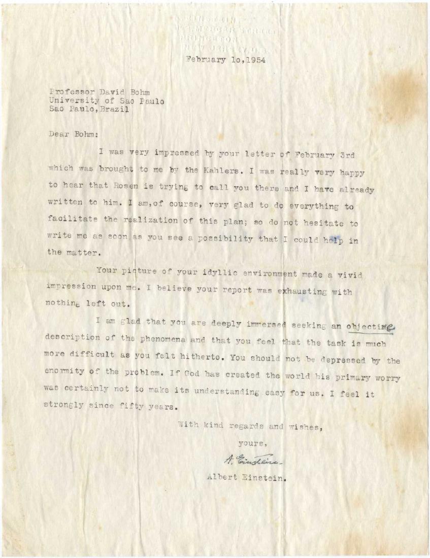 Letter. Professor Einstein expresses his opinion, "What