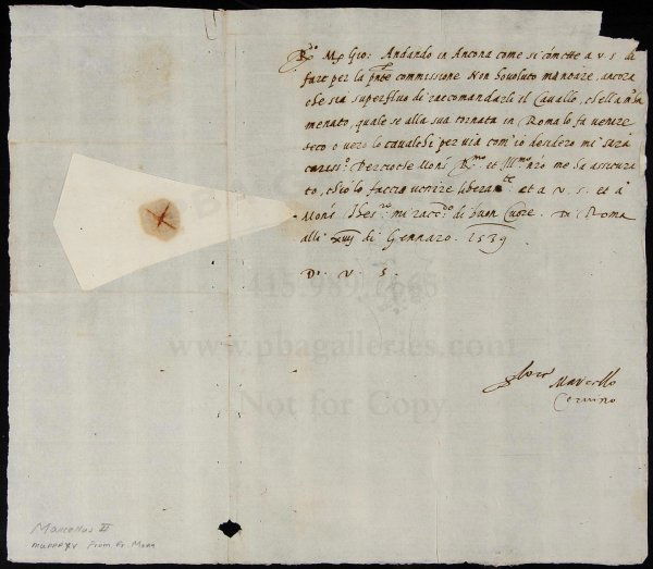 Letter Signed by Pope Marcellus II 1530