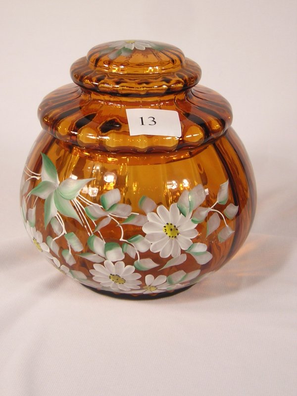 L.G. Wright: amber apothecary covered jar, made by