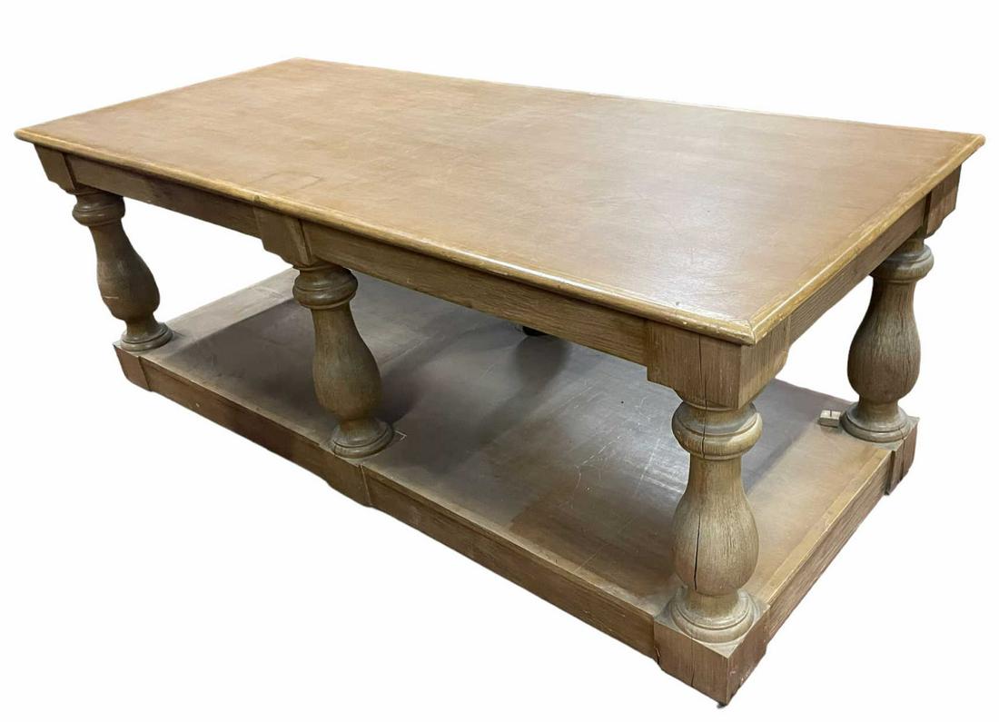 LIBRARY TABLE WITH SIX CARVED COLUMN LEGS