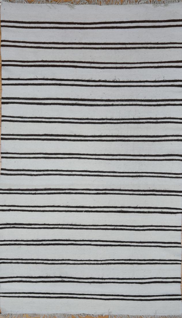 Contemporary Black and White Striped Wool Kilim Rug 12'1 x 15'0