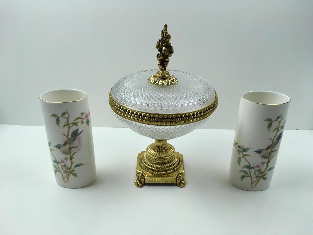 LIDDED COMPOTE AND TWO VASES