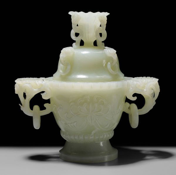 An Exquisite White Jade Inlaid Gems Flower Pattern Double-Ears VaseMar 06, 2026A HETIAN JADE LIDDED CENSER WITH OPENWORK MOVABLE RING AND RUYI-SHAPED HANDLES, CARVED WITH POETRY4 days LeftA HETIAN JADE OPENWORK LIDDED CENSER WITH TWIN HANDLES, INLAID WITH PRECIOUS MATERIALS DEPICTING A4 days LeftHetian Jade Gu Vase with Double Ears Inlaid with Eight TreasuresFeb 28, 2026A Precious White Jade Phoenix-Handled Vase6 days LeftA HETIAN SPINACH-GREEN JADE CENSER WITH WHITE JADE LID, DOUBLE "DOUBLE-HAPPINESS" (SHUANGFU) EAR4 days LeftCeladon Jade Dragon Handle Censer Burner5 days LeftAn Exquisite Filigree and Gilding Inlaid White Jade Flower Pattern Double-Ears and Tripod Censer2 days LeftA Qing Dynasty dragon white jade cupFeb 06, 2026A HETIAN JADE SET OF THREE HOLLOWED COVERED CENSERS WITH GREEN-JADE BASEFeb 21, 2026White Hetian Jade Censer with Spinach Green Jade BaseFeb 28, 2026Chinese Carved Jade Dragon Handle CensorFeb 07, 2026A HETIAN JADE VASE WITH FLORAL-AND-GRASS MOTIFS AND RUYI-SHAPED HANDLES, QING DYNASTYFeb 07, 2026A Brilliant White Jade Gilt-Silver Gem-Inlaid Tripod Censer And Cover6 days LeftMid-qing dynasty, spinach green jade censer with cloud-dragon engraving & ring handles5 days LeftAn Exquisite Celadon Glazed Inlaid Bronze Gourd-Shaped Double-Ears VaseFeb 24, 2026