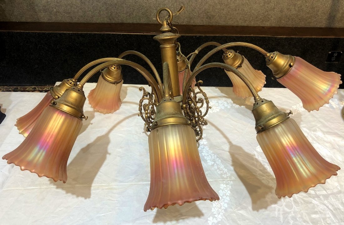 Bronze Modernist Lighting Bolt Chandelier with Holophane Glass FixturesChairish Auctions4.5(10.4k)$2,400