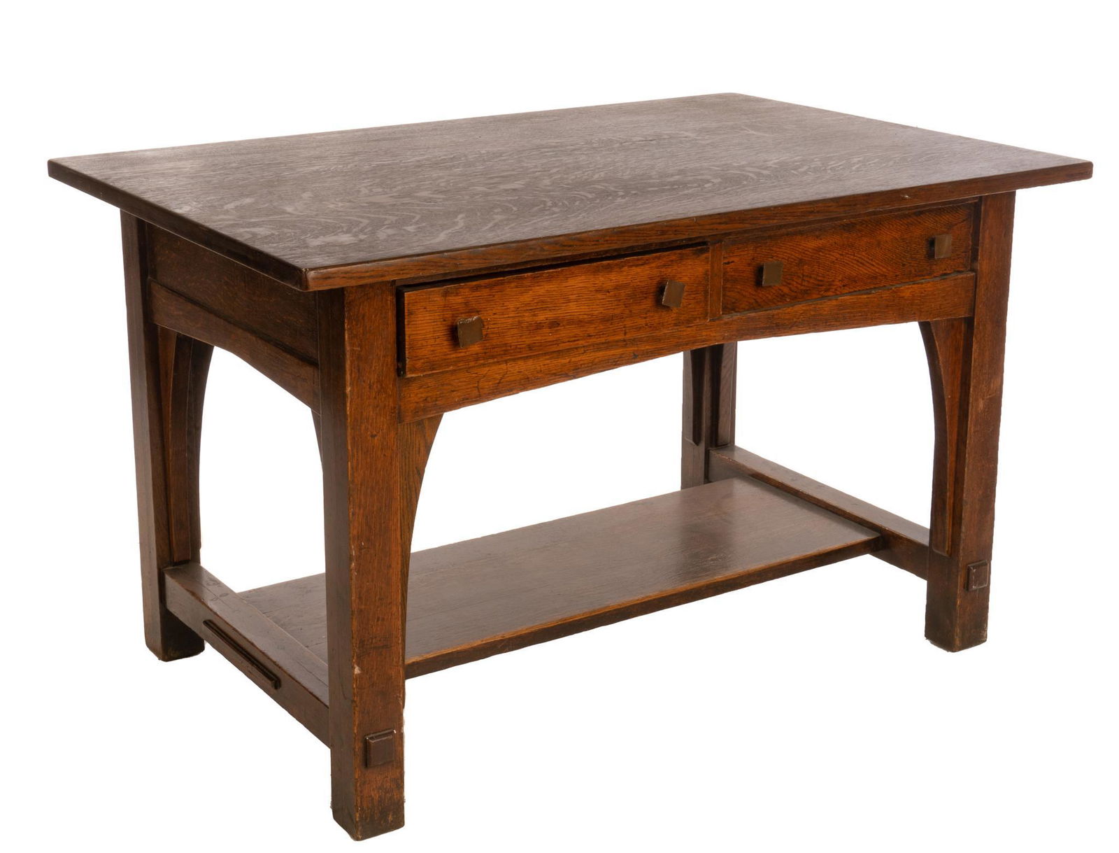 Gustav Stickley, Inlaid table7 days LeftLimbert, Partners desk, model 1357 days LeftLimbert, Library table7 days LeftDON RUSEAU CUSTOM OAK WOOD DRAW-LEAF DINING REFRACTORY TABLE (1 OF 2)Mar 21, 2026Mission Style Oak Server with Four Drawers and Copper HardwareMar 21, 2026DON RUSEAU CUSTOM OAK WOOD DRAW-LEAF DINING REFRACTORY TABLE (2 OF 2)Mar 21, 2026Stickley Mission Oak Arts & Crafts Desk with Cubby Top2 days LeftArts & Crafts C1910 Carved Oak Library Table with Lyre Legs4 days Left1910s L. & J.G. Stickley Antique Oak Library DeskMar 21, 2026STICKLEY STYLE MISSION OAK OVAL LIBRARY DESKMar 21, 2026AMERICAN CRAFTSMAN OAK PEDESTAL DINING TABLEMar 27, 2026Grand Rapids Two-Drawer Arts & Crafts Oak Desk c1910Mar 21, 2026ENGLISH COUNTRY GEORGE III SCRUBBED PINE FARMHOUSE TABLEMar 28, 2026Limbert #105 One-Drawer Oak Desk c1910Mar 21, 2026EIGHTEENTH CENTURY OAK TABLE WITH TWO DRAWERS AND TWIST FORM LEGS.Mar 24, 2026Rustic 19th Century Turned Wood Console or Library Table with Rich Patina11 hrs Left