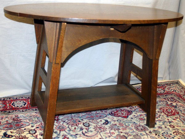 LIMBERT STYLE OAK ARTS & CRAFTS LIBRARY TABLE,