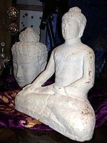 Limestone Buddha head and Shakyamuni Buddha