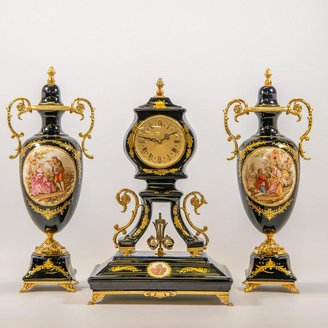 Antique French Sevres Porcelain & Dore Bronze Three Pcs Clock & Matching Candelabras SetBKG Antique Mall4.4(440)$2,0001 day Left