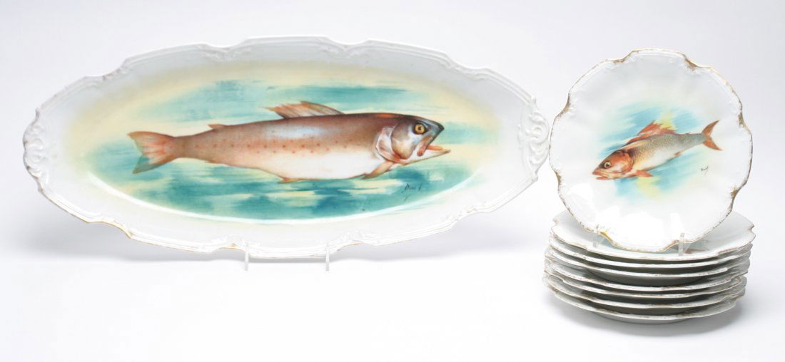 Limoge Platter With 5 Desert PlatesMar 10, 2026(2 SETS) LUNEVILLE & COULEUVRE FRENCH PORCELAIN FISH SERVICES5 days LeftSet of 4 Edwardian Hand Painted Fish Plates, Signed Wolly Fowkes 1903Large Couleuvre French Limoges Porcelain Fish PlatterFeb 28, 2026Fourteen Piece French Porcelain Fish Service, mid 20th c., Large Platter- H.- 1 1/2 in., W.- 16 1/2Feb 27, 2026Thirteen Piece French Limoges Porcelain Fish Service, 19th c., Platter- W.- 16 3/8 in., D.- 12 in.,Feb 27, 2026French Eleven Piece Ceramic Fish Set, 20th c., Plate- H.- 1 1/8 in., Dia.- 9 3/8 in.; Platter- H.- 1Feb 27, 2026Thirteen Piece French Limoges Porcelain Fish Set, 20th c., Platter- H.- 1 1/2 in., W.- 16 1/2 in.,Feb 27, 2026Limoges Porcelain Fish Service Set for 85 days LeftFifteen Piece French Limoges Porcelain Fish Service, mid 20th c., Platter- H.- 1 in., W.- 14 3/4Feb 27, 202611pc French Fish Plate Set - Platter & 10 PlatesFeb 23, 2026Vintage Noritake Fish Plates and Platter6 days Left13pc French Fish Plate Set - Platter & 12 PlatesFeb 23, 202612 PC LIMOGE FISH SERVICEMar 07, 2026Nineteen Piece French Porcelain Fish Service, mid 20th c., Plates- Dia.- 9 1/4 in., Platter- H.- 1Feb 27, 2026LIMOGE FISH SETMar 07, 2026